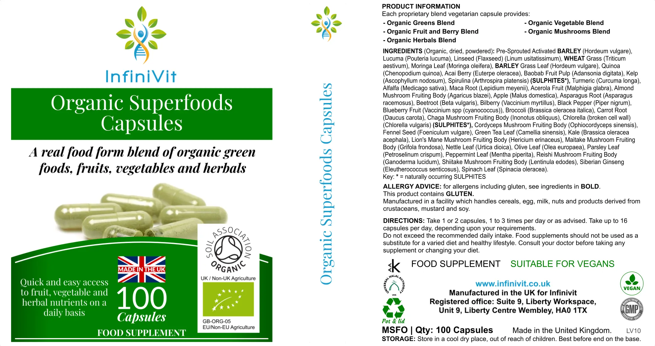 Organic (except the capsule shell) – registered with the Soil Association